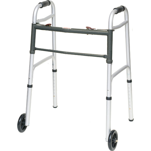 Aluminum Junior Walker Folding 5 Wheels 2 Button Release