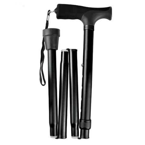 Folding Cane With Comfort Handle * Black * Free Bonus Storage And Carry Pouch * Smoothly And Securely Folds And Unfolds * Folds To 12 X 5 Making This Cane Ultra-compact And Portable Easily Fitting Into A Purse Airplane Carry-on Briefcase And Much More * Sturdy Durable Anodized Aluminum Is Lightweight - Weighs Only 15 Ounces * Comfortable Contoured Ergnomic Rubber Handle Provides An Easy-to-grip Surface While Removing Pressure From The Wrist * Integrated Wrist Strap * Rubber Tip Is Slip-resistant And Can Be Removed And Replaced * Safely Supports Up To 300 Lbs * Handle Height Adjusts In 1 Increments From 33 To 37 * Cane Folds Into 4 Convenient Parts * Great For Travel Or Everyday Use * Weight Capacity: 300 Lbs. *