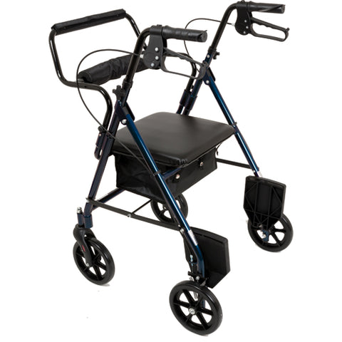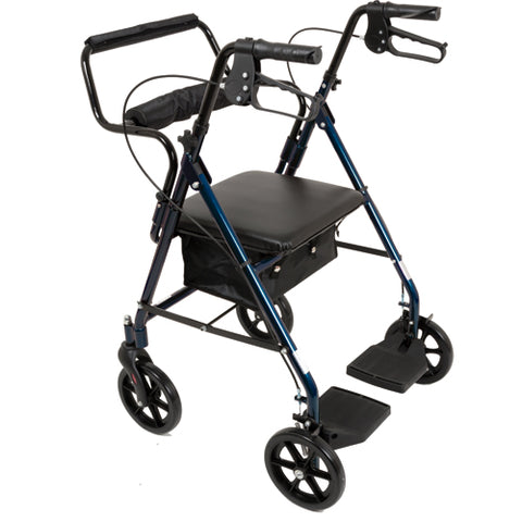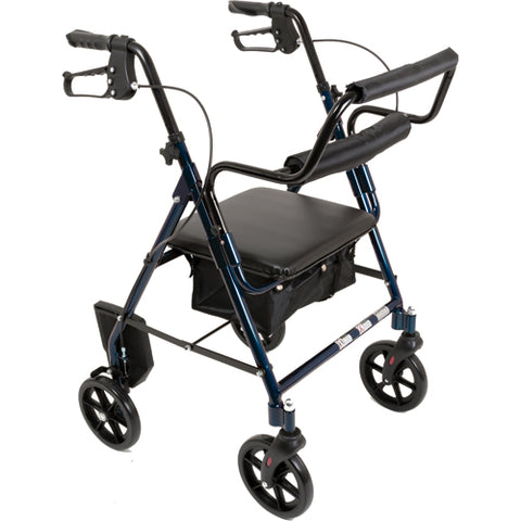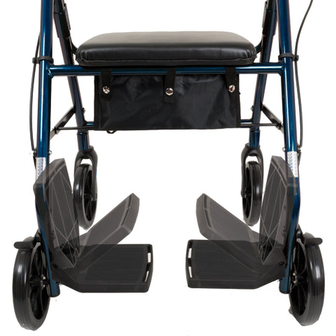 Blue Finish * Combines The Features Of A Rollator With A Transport Chair All In One Unit * An Individual Can Ambulate Independently Or Be Pushed Safely By A Caregiver * The Footrests Flip-down And The Padded Backrest Is Reversible Depending On Whether You Are Using It As A Rollator Or Transport Chair * Equipped Large Non-marring 8 Black Casters With Soft Grip Tires Ideal For Both Indoor And Outdoor Use * Easy-to-operate Ergonomic Hand Brakes * Water-resistant Nylon Pouch Attaches Under Seat For Added Privacy And Security Of Personal Items * Fold-strap For Easy Storage And Transport * Designed To Meet All Your Patients? Fundamental Needs * Height Adjustable For A Custom Fit * Supports Patient Weights Up To 250 Pounds * Lightweight Aluminum Frame * Reversible Padded Backrest For Easy Conversion From Rollator To Transport Mode * Comfortable Flip-up Padded Seat * Overall Width: 24 * Width Between Hand Grips: 19 * Seat Dimensions: 14.25 (w) X 13.25 (d) * Seat-to-floor Height: 21.75 * Weight Capacity: 250 Lb * Wheel Size: 8 * Product Weight: 22 Lb * Carton Dimensions: 25 X 10.2 X 34.25 * Shipping Weight: 25 Lb * Warranty: Limited Lifetime On Frame One Year On All Parts *