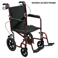 Light Weight Weighs Only 19 Lbs But Has A Weight Capacity Of 300 Lbs. The Only One On The Market! Handy Lever On Chair Back Makes It Easy And Convenient To Fold Back Down Folds Flat For Easy Transport Users With Limited Upper Body Strength Or Limited Dexterity Will Love The Ease Of Operation And Handling Powder Coated Aluminum Frame Is Lightweight Durable And Is Available In Blue And Red Seat Is Made From Durable Lightweight Nylon Upholstery And A Seatbelt And Hand Brakes Are Included For Additional Safety Considerations Companion Activated Wheel Locks 12 Rear Flat-free Wheels Provide A More Stable Ride Over Various Terrains Plus Ease Of Going Over Thresholds And Curbs Black Composite Wheels Require Virtually No Maintenance And Incorporate Non-marring Surface Comes Assembled. Just Pop Open Flip Up Back And Put On Footrest Limited Lifetime Warranty