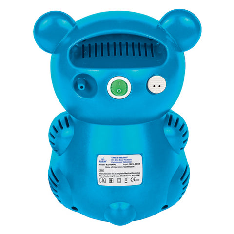 Adorable Child Friendly Pediatric Nebulizer Compressor Kit By Blue Jay * Children Love Mr. Blue Bear * The Child Friendly Design Reduces Anxiety And Makes Medication Time Fun And Easy * Converts Prescribed Medication Into An Aerosol Mist Of Easily Inhaled Microscopic Droplets * Durable High-power Compressor System Can Dispense All Types Of Liquid Medication Quickly And Effectively * Delivers 39 Psi At Maximum Pressure And 16 Psi Operaing Pressure * Liter Flow Range 6 - 8 Lpm * Operates Quietly Below 40 Dba * Lightweight And Easy To Carry With A Convenient Built-in Carry Handle * Medication Capacity 6ml * Comes With Two Masks Suitable For A Wide Range Of Both Infant And Child Users * Kit Inlcudes Mr Blue Bear Compressor Nebulizer Hibernation Carry Bag Small Child Mask Large Child Mask T-piece Mouthpiece Filters Medication Cup Tubing And Users Manual * 5 Year Warranty *