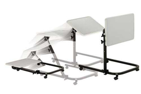 No Assembly Required * The Mast Of The Table Pivots And Can Be Locked In Onof The 3 Positions From Flat On The Floor To 90 Degrees * The Pivot Feature Allows The Table Top To Be Positioned Closer To Individuals In A Bed Sitting In A Wheelchair Or Folded For Storage * The Table Top Tilts With The Angle Of The Mast * 4(ea) 2 Casters (2 Locking) * Color: Grey Table Top Black Frame * Dimensions: Table Top 23.5 W X 15.75 D Height Adjusts: 28 - 37 * Base Measures 25 X 25 * Limited Lifetime Warranty