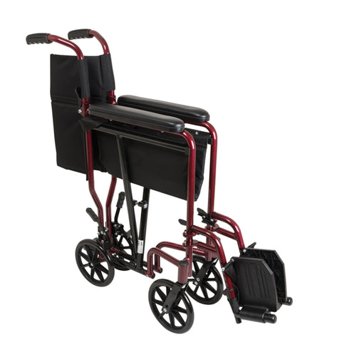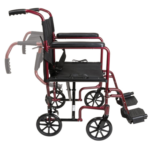 The Probasics Aluminum Transport Chair Is A Compact Lightweight Design With An Easy-to-maintain Burgundy Finish. 300 Lb Weight Capacity. Sold As Each. The Probasics Aluminum Transport Chair Is A Compact Lightweight Design With An Easy-to-maintain Finish. The Flared Handles And Handy Back-release Hinge Allow The Back To Fold Down Flat And Compact For Easy Storage And Transport. Comes Complete With Seat Belt Tool-free Swing-away Composite Footrests And Heel Loops. Fits Patient Weights Up To 300 Pounds. Lightweight Aluminum Construction (only 20 Lbs). Flared Handles And Handy Back-release Hinge Allow The Back To Fold Down Flat And Compact For Easy Storage And Transport. Stylish Aluminum Frame With Permanent Rear Axel For Strength And Durability. Color: Burgundy. Padded Full-length Permanent Armrests. Padded Nylon Upholstery Is Comfortable Lightweight And Easy To Clean. Seat Belt For Added Safety. Nylon Seat Straps Allow For Ease Of Folding And Lifting. Push-to-lock Rear Wheel Locks. Composite 8 Wheels With Solid Rubber Tires Are Lightweight And Maintenance Free. Tool-free Swing-away Composite Footrests With Heel Loops Included. Hcpcs Code: E1038