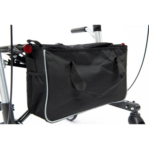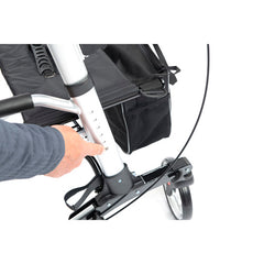 Deluxe Padded Height-adjustable Armrests Enable Users Of A Wide Range Of Heights To Stand Erect * This Feature Allows Users To Look Ahead So They Feel Safe Secure And Confident While Walking * Ergonomic Dual Lockable Handbrakes Provide Better Control For Braking Sitting And Parking * Comfortable Deluxe Fabric Seat Slides Front To Back For Either Walking Or Sitting And Is Easy To Clean * Detachable Wide Backrest Provides Comfortable And Secure Back Support * 8 Front Wheels Swivel 360 For Easy And Safe Maneuvering * Wheels Provide Stability & Security While Being Strong Enough For Indoor Outdoor And Uneven Surfaces * Comfortable Padded Stand Assist Handles Provide An Easier And Safer Transition Between Sitting And Standing * Compact Design Allows For Easy Transport And Convenient Storage * Convenience Package Included Containing Beverage Holder Safety Led Light Personal Item Bag And Cane Holder * User Height Range: 5?0 - 5?11 * User Weight Capacity: 300 Lbs * Dimensions 29.6 L X 25 W X 41 H * Armrest Height Range 41 - 46 * Seat Dimensions 19 W X 10 D * Seat Height From Floor: 21 * Rear Wheel Base: 25 * Wheel Size: 8 Diameter * Unit Weight: 22 Lbs * Folded Dimensions: 29.6 L X 9.5 W * Warranty: 1 Year Limited *