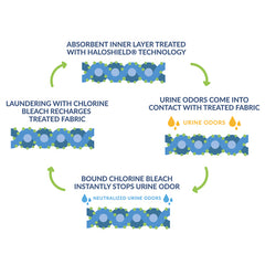 Antimicrobial Protection That Eliminates Odor Embarrassment And Hassle * The Germ And Odor-killing Power Of The Reusable Underpad Is Renewed With Every Wash In Chlorine Bleach * Eliminates The Unpleasant Embarrassing Urine Odors That Result From Incontinence * Kills 99.9% Of Odor-causing Bacteria Within 10 Minutes Of Contact With The Haloshield Underpad * Ultrasoft Moisture-wicking Top Layer Keeps Users Dry * Super Absorbent Inner Layer Quickly Traps Fluids * 100% Waterproof Protection For Bedding And Chairs * Reliable And Effective * Non-irritating For Sensitive Skin * More Economical And Better For The Environment Than Disposables *