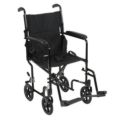 19 Black Upholstery * Black Frame * Aluminum Frame Is Lightweight And Strong * Composite 8 Wheels Are Lightweight And Maintenance Free * Both 17 And 19 Come With Swing-away Footrests * Padded Armrests Provide Additional Comfort * Nylon Upholstery Is Comfortable Lightweight And Easy To Clean. * Aluminum Casted Back Release Hinge Allows Back To Fold Down For Easy Storage And Transport * Standard Rear Wheel Locks * Overall Width W/ 17 Seat: 20 (open) 9 (closed) * Overall Width W/ 19 Seat: 22 (open) 9 (closed) * Overall Height: 39.5 * Seat To Floor Height: 19 * Back Height: 18 * Seat Depth: 16 * Overall Length W/ Riggings: 33 * Weighs Only 19 Lbs * Carton Shipping Weight: 24 Lbs * Weight Capacity: 300 Lbs * Limited Lifetime Warranty * Hcpcs Suggested Code: E1038